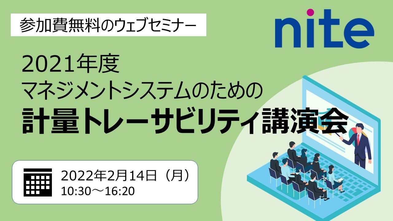 この度、NITE、公益財団法人日本適合性認定協会(JAB)、および一般財団法人日本品質保証機構(JQA)計量計測部門は、来る2022年2月14日 (月)、「2021年度マネジメントシステムのための計量トレーサビリティ講演会」(Zoomによるライブ配信、聴講無料、事前申込制)を開催することになりました。