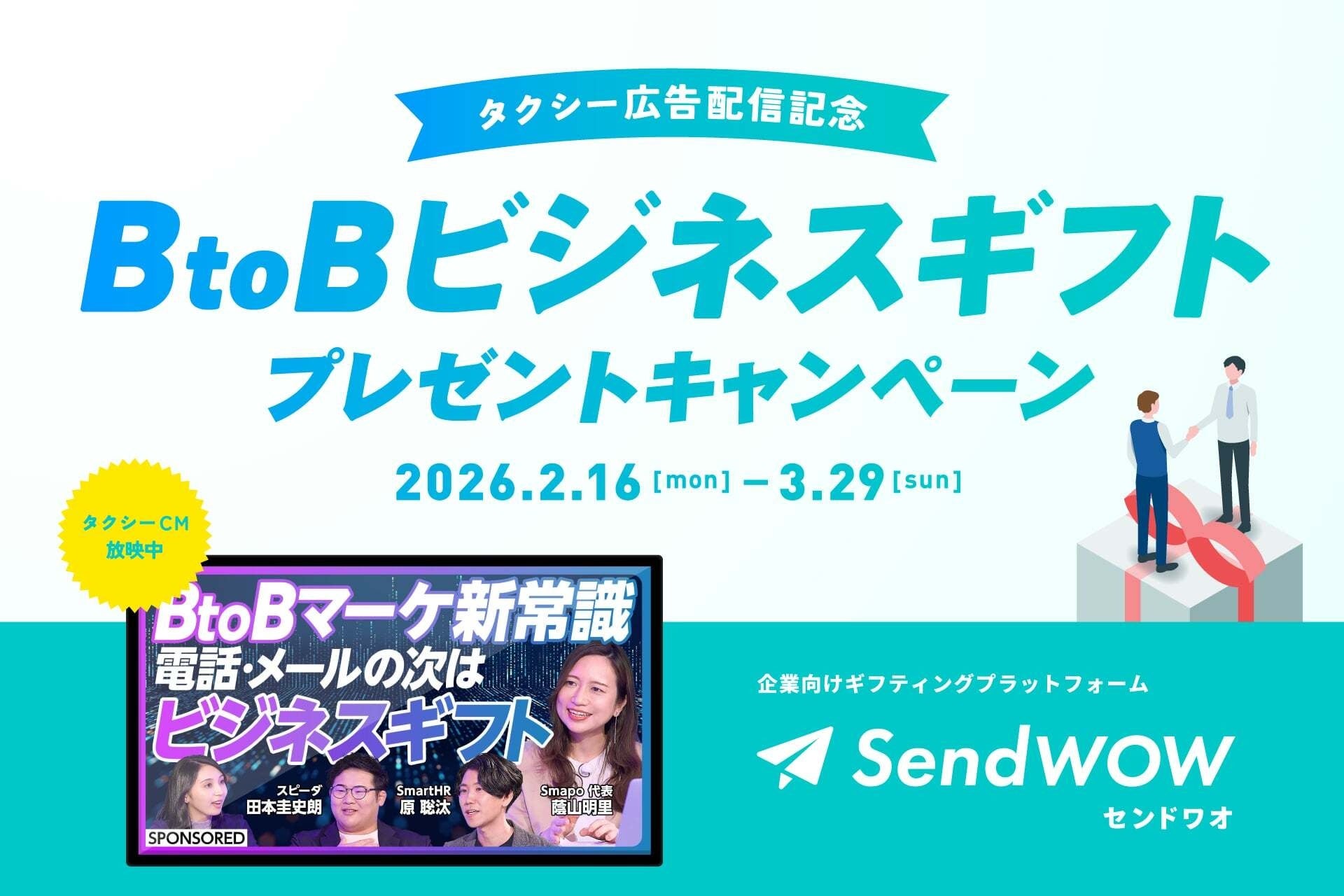 BtoBシーンにおいて、ギフトやレターを簡単に送れるギフトマーケティングプラットフォーム「SendWOW(センドワオ)」を開発・提供する株式会社Smapo(本社:東京都港区、代表取締役:蔭山 明里、以下、Smapo)は、2026年2月16日(月)より、ビジネス映像メディア「PIVOT」で公開中の動画を再編集の上、初となるタクシー広告を放映することをお知らせします。