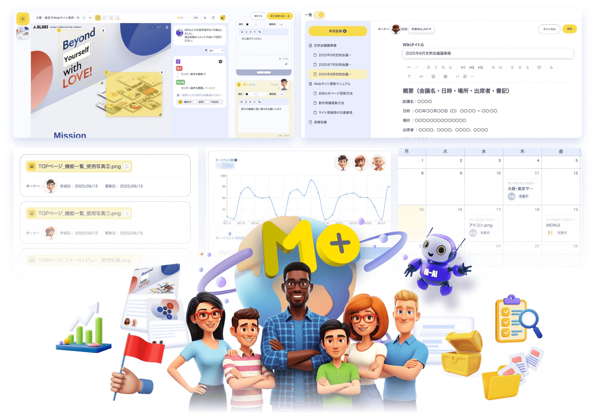 【MONJI+】は、業務の効率化にとどまらず、次の一手を導くAIパートナーとして進化します。