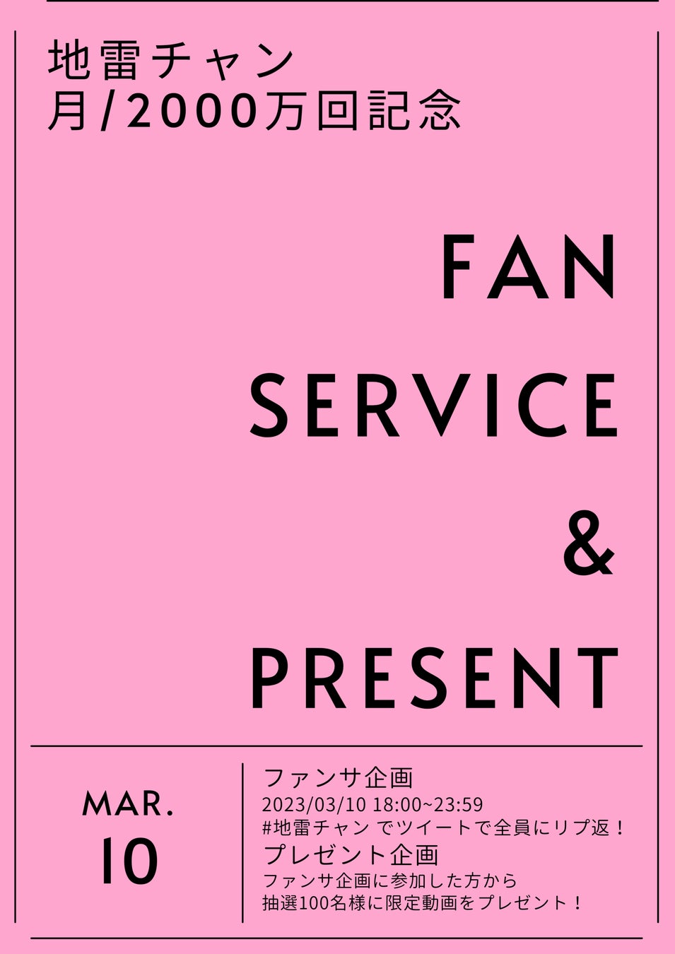 更に「地雷チャン」の1ヶ月の動画再生数が2000万回を突破したことを記念したファンサ企画を実施