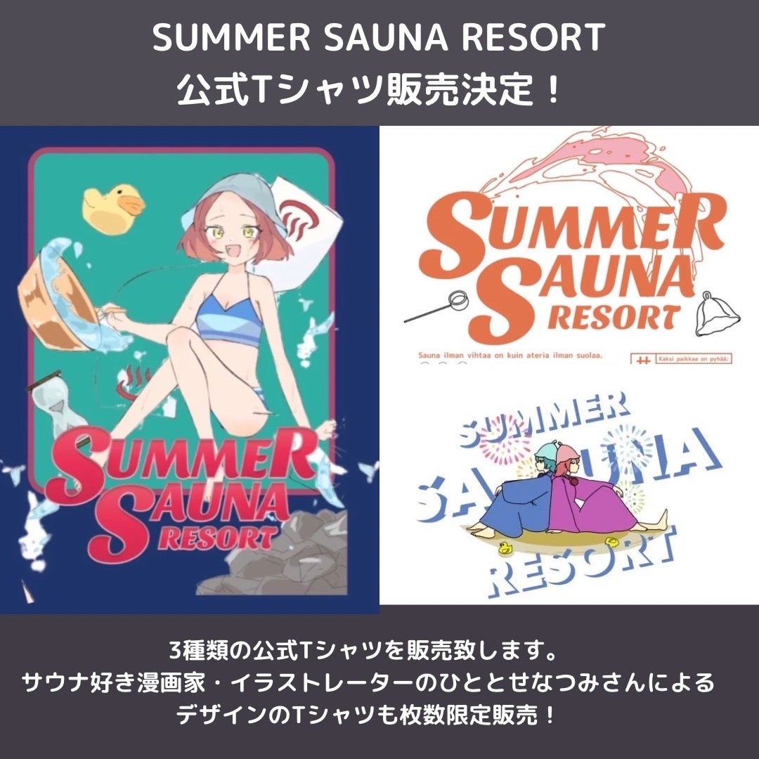 サウナ好き漫画家・ひととせなつみさんによるオリジナルTシャツやSUMMERSAUNARESORT公式フェスTシャツなど3種類を限定発売いたします!