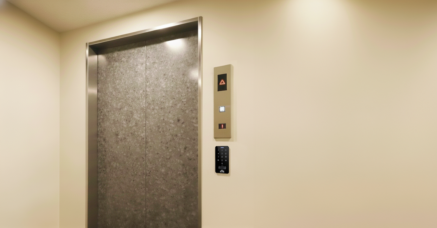 ICカード・暗証番号・スマホアプリのいずれかでエレベーターを呼び出すため、部外者の入居者フロアへの不正アクセスを防ぎます。くじらスマートインターホンと連携させると、より利便性が向上します。