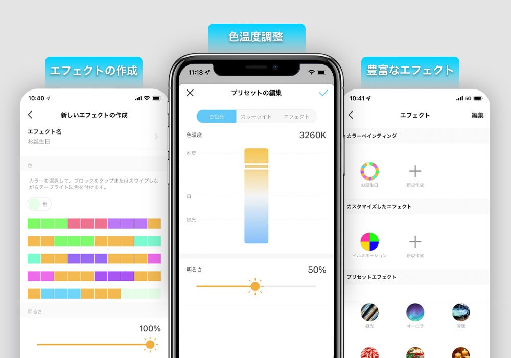 ・マルチカラー&エフェクト:1600万色を50パターンのカラーゾーンでカスタマイズすることが可能