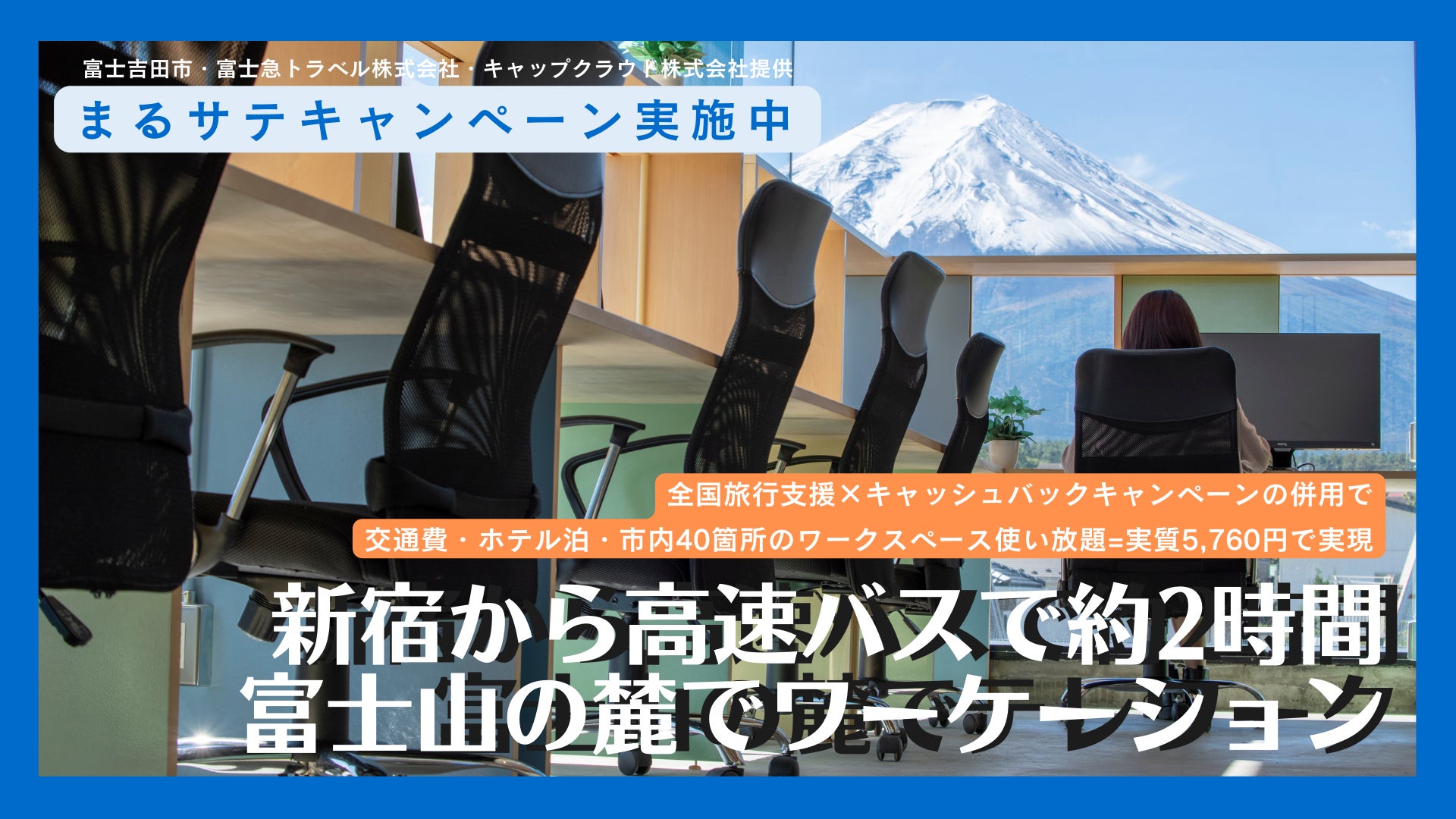 【山梨県富士吉田市】全国旅行支援×キャッシュバックキャンペーンの併用で14,200円の滞在が実質5,760円に!今年の秋冬に富士山の麓でワーケーションする方必見のお得なプラン提供中