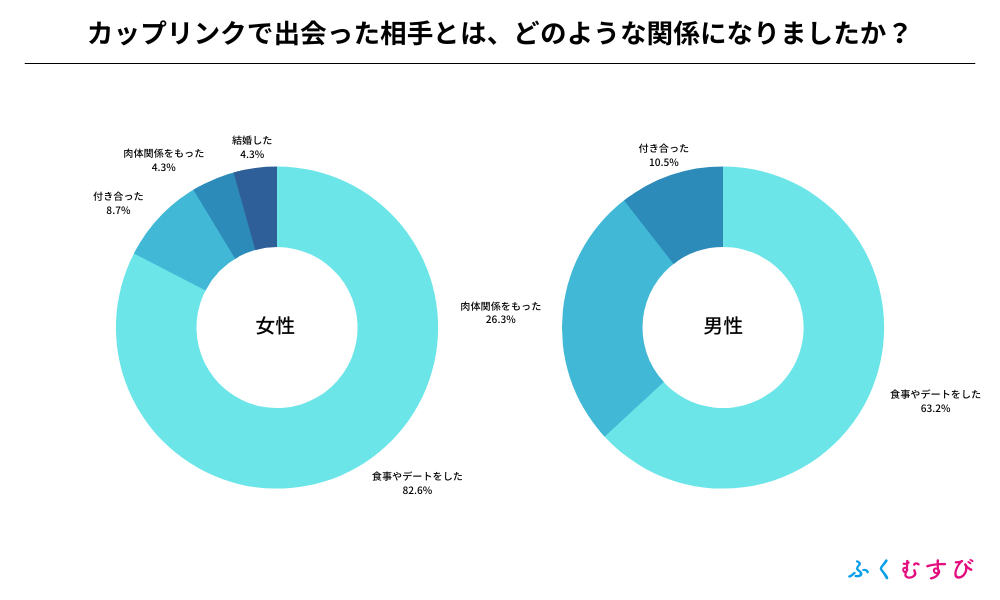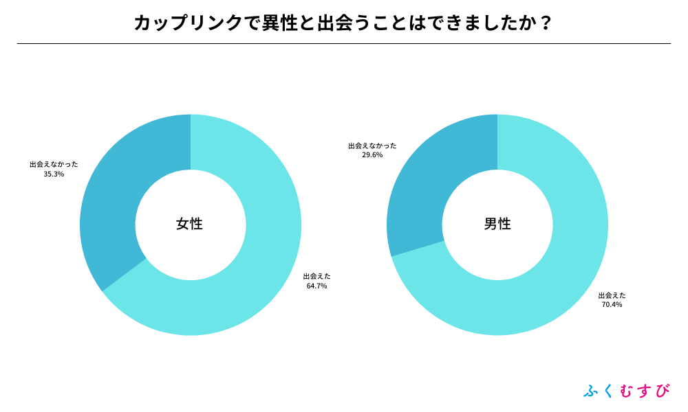 ・カップリンクで異性と出会えた割合は、男性が70.4%、女性が64.7%となりました。