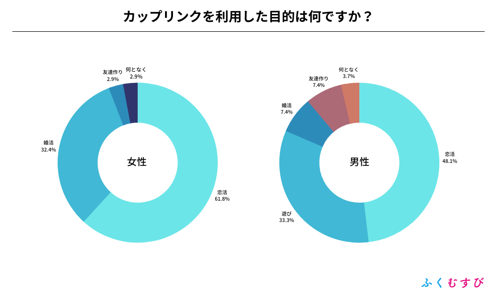 ・女性がカップリンクを利用した目的は、恋活が1位、婚活が2位となりました。