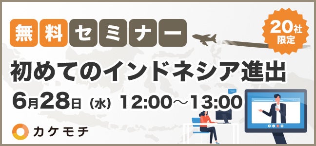インドネシアに特化した進出支援とマーケティングを手掛けるカケモチ株式会社(本社:福岡県福岡市 代表取締役:柳沢 孝一)は、2023年6月28日(水)にインドネシアへの事業進出を検討している企業に向けて無料セミナーを開催します。