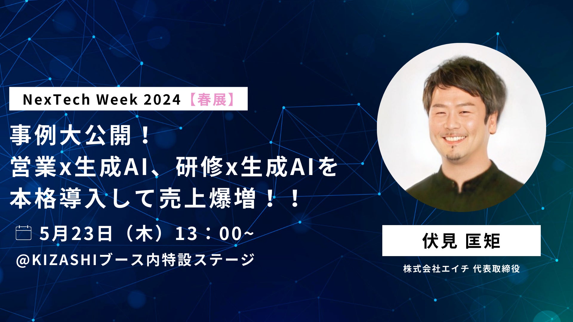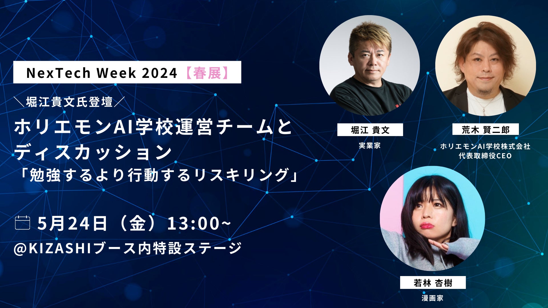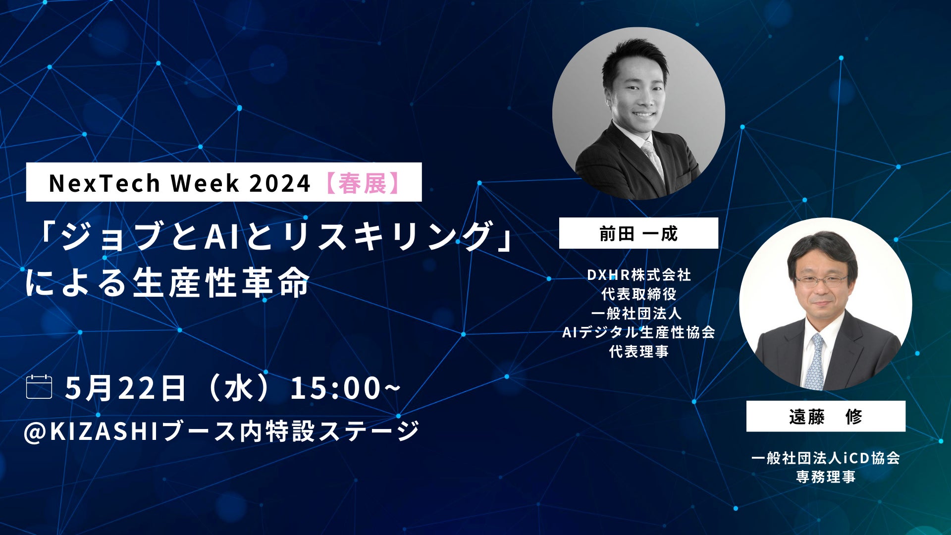 株式会社KIZASHI(所在地:東京都渋谷区、代表取締役:菅野 哲也、以下:KIZASHI)は、2024年5月22日(水)〜24日(金)に東京ビッグサイトで開催される人、企業、世界の「未来」を変革するソリューションとの出会いの場「NexTech Week 2024」にて、生成AI時代のリスキリングをテーマに、会場内で最大規模のブースを出展いたします。そのブース内の特設ステージにおいて実施するトークセッション・講演の登壇者第2弾をお知らせいたします。