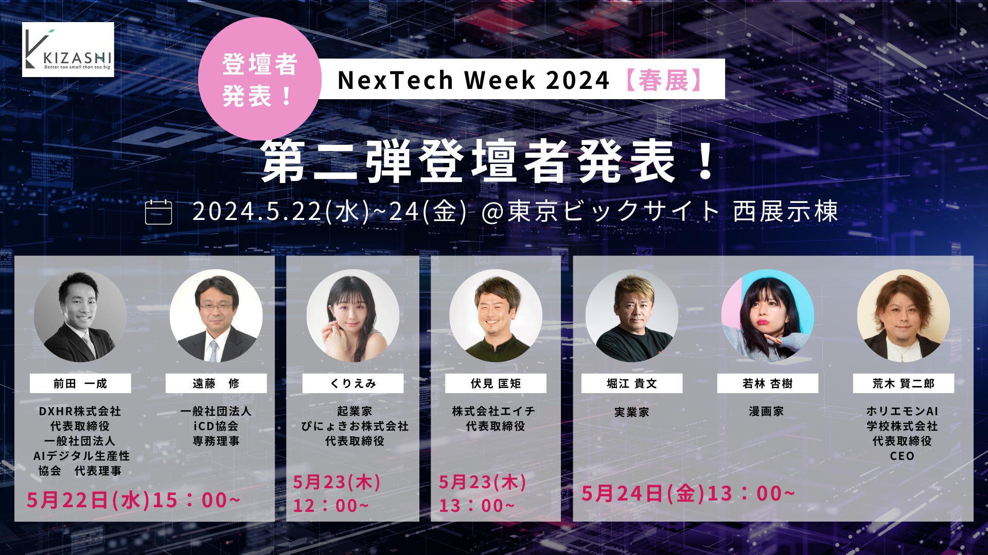 KIZASHI、「NexTech Week 2024」出展ブースの登壇者第2弾を発表