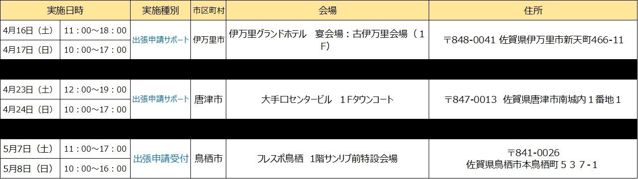 【佐賀県内の実施予定】