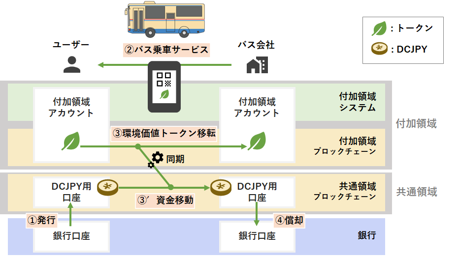~電力Peer to Peer(P2P)プラットフォームでの環境価値の取引経過が記録されたデジタル通貨DCJPY(仮称)を使ってバスを利用~
