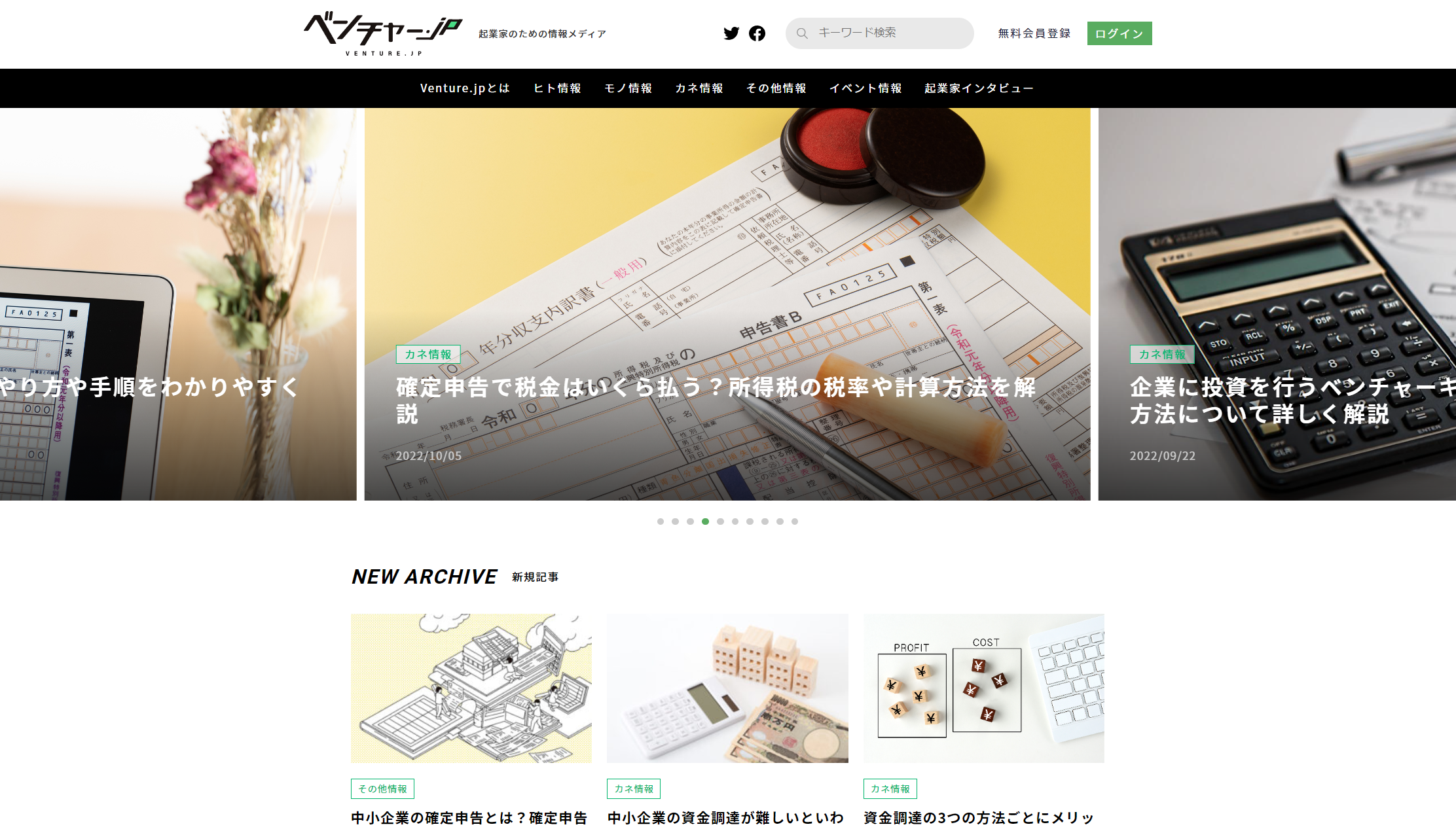 「Venture.jp」のFacebookページ、Twitterアカウントも開設しています。