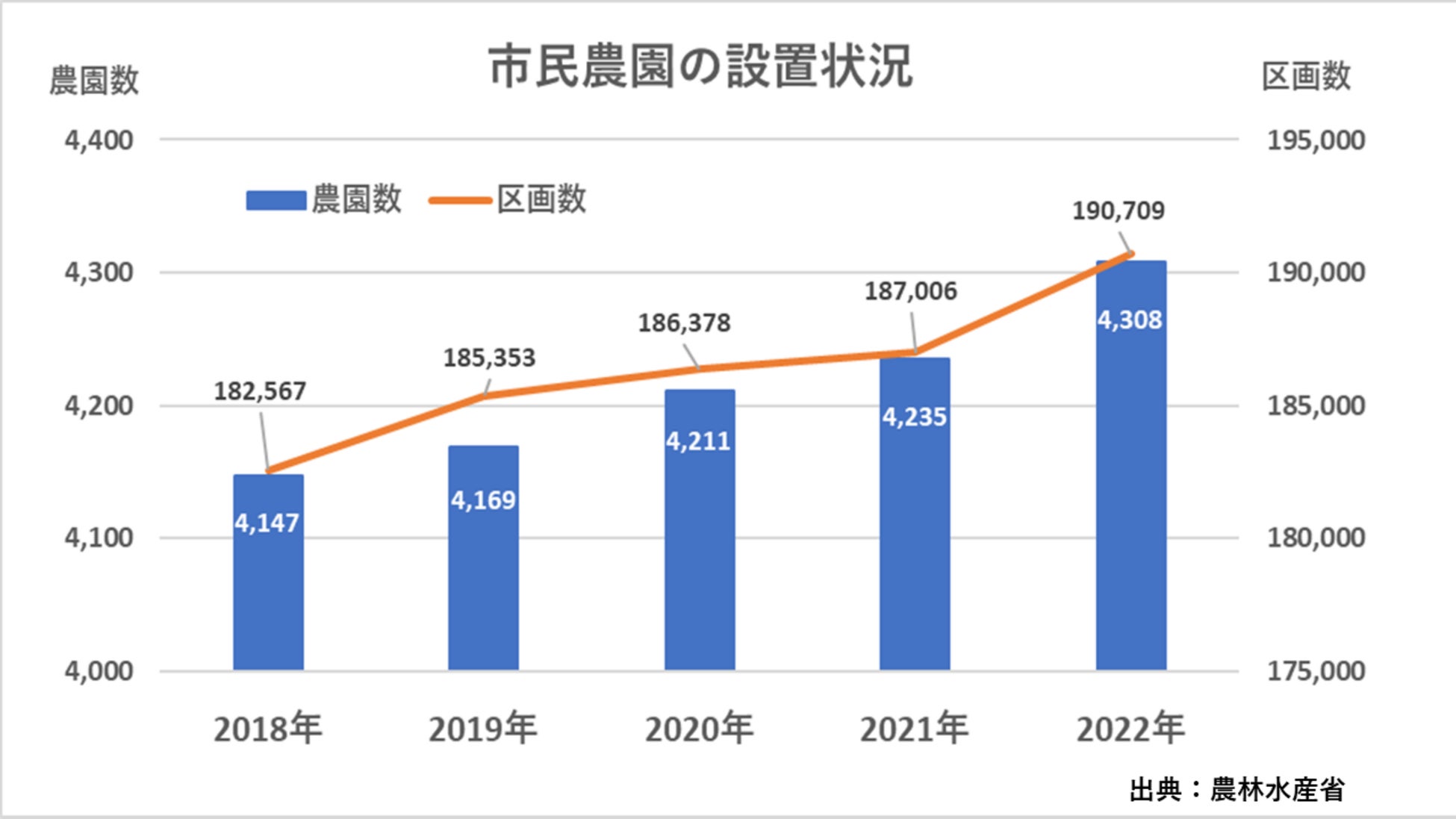 市民農園の開設状況を調べた農林水産省の調査データでは、年々農園数・区画数共に増え続けています。初めての農業体験で土に触れる喜びを感じ、趣味として継続されている方も多くいらっしゃいます。また、最近の野菜価格の高騰もあり、自身で作った野菜に安心感だけでなくお得感も感じられている方も多いようです。一方、畑を耕すのは人力では疲れる為、耕うん機を使って作業を効率的に行いたいというニーズがあるものの、耕うん機は「操作が難しそう」「プロ農家が使うもの」と一般の方にはハードルが高いという声も上がっていました。