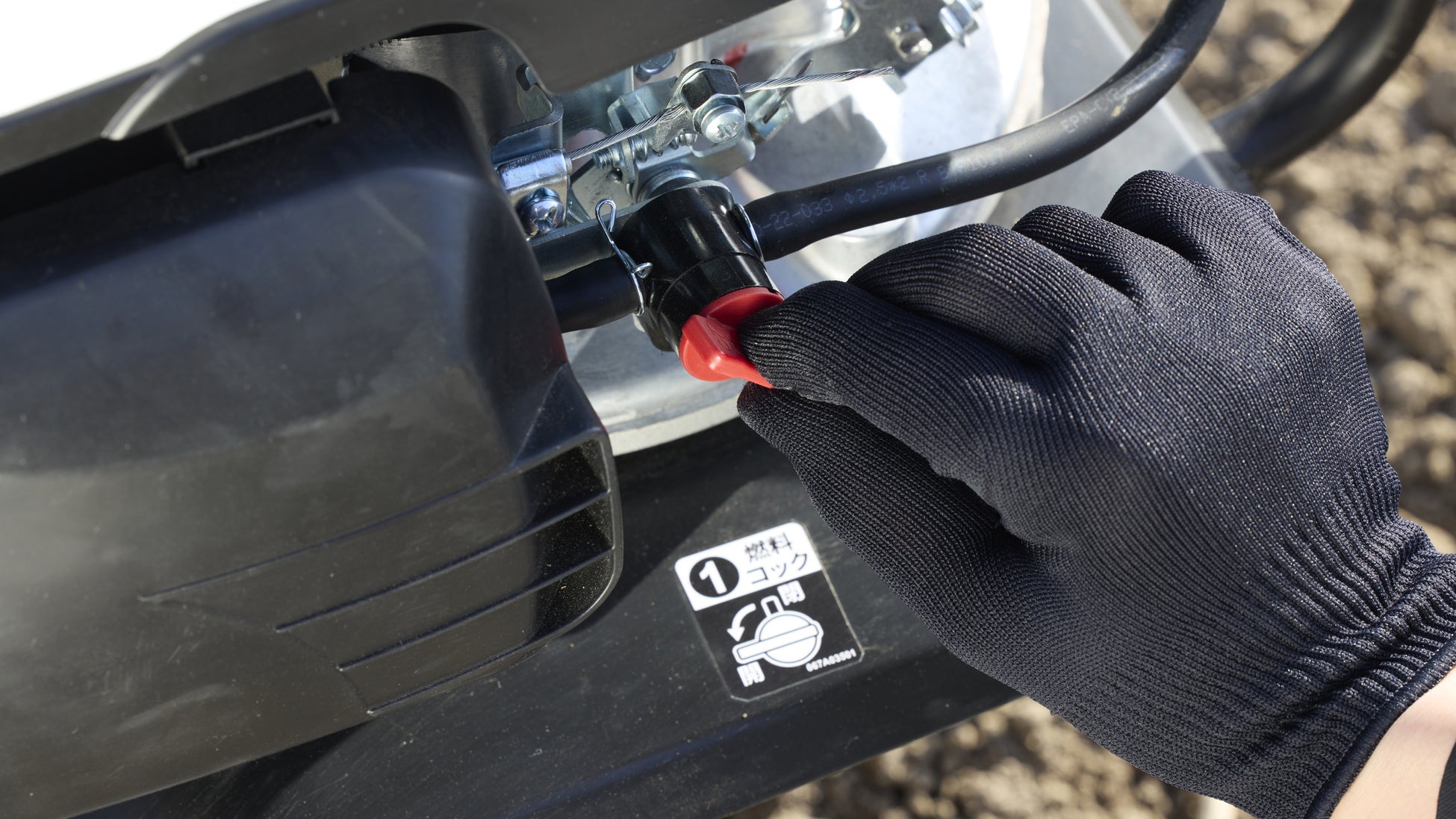 バランスが優れているので、安定して作業ができます。足元の悪い畑で耕うん機を操作すると、慣れていない方はハンドルを取られて、真っすぐ歩くのも一苦労です。使用時の安定性を図るためにエンジンの配置や全体のバランスに配慮しているので、初心者の方も疲れず安全にお使いいただけます。また、スロットルレバーを握れば動き、離せば止まるので操作も簡単です。