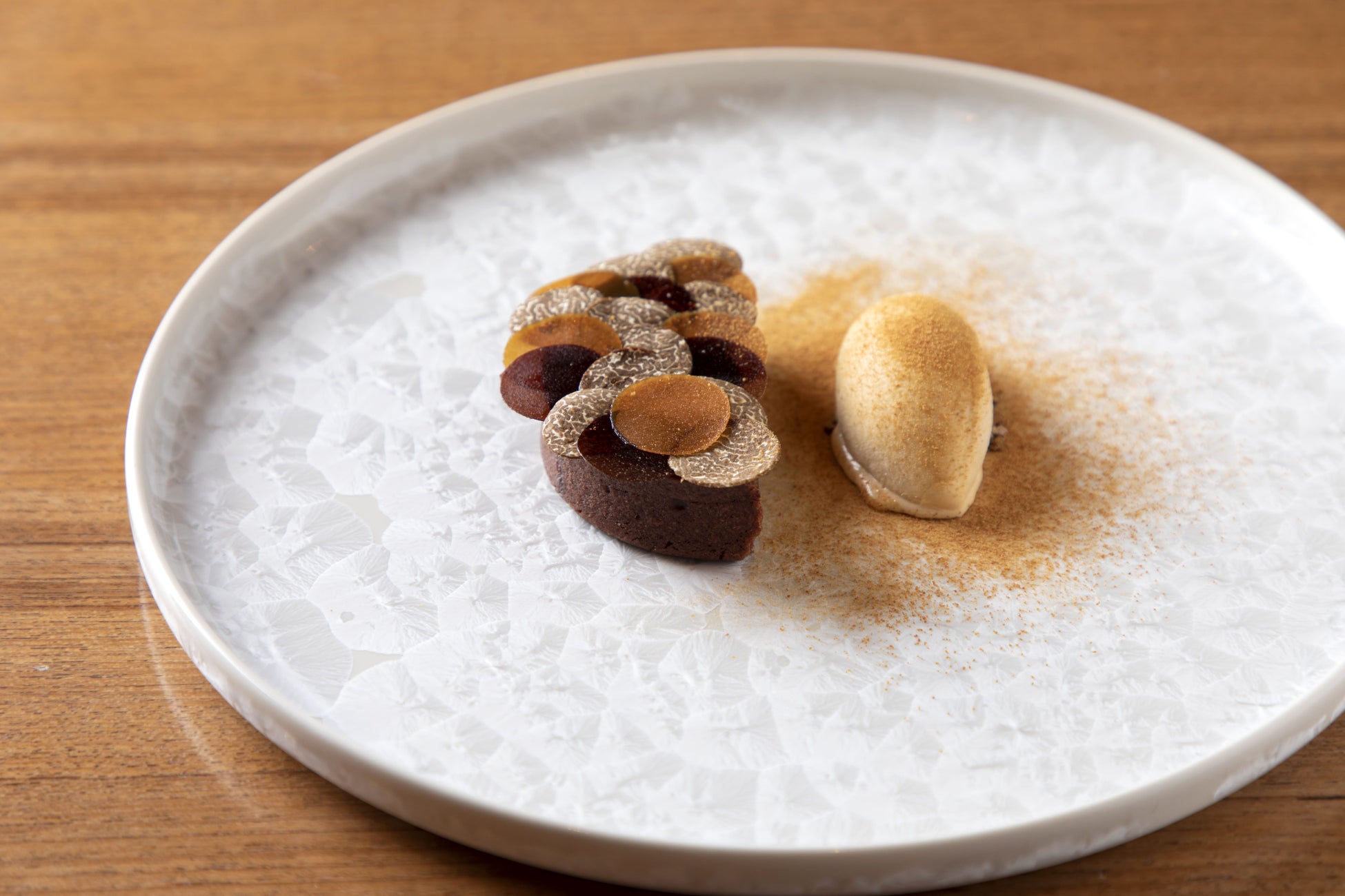 『鮑 椎茸 あおさ』 『チョコレートのタルト トリュフ 味噌 醤油』
