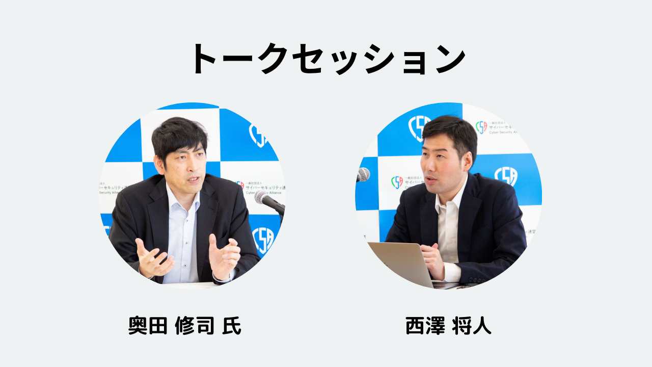 トークセッションは、当連盟の西澤将人をファシリテータに『サイバーセキュリティ経営ガイドライン』について大きく3つのテーマで語られました。
