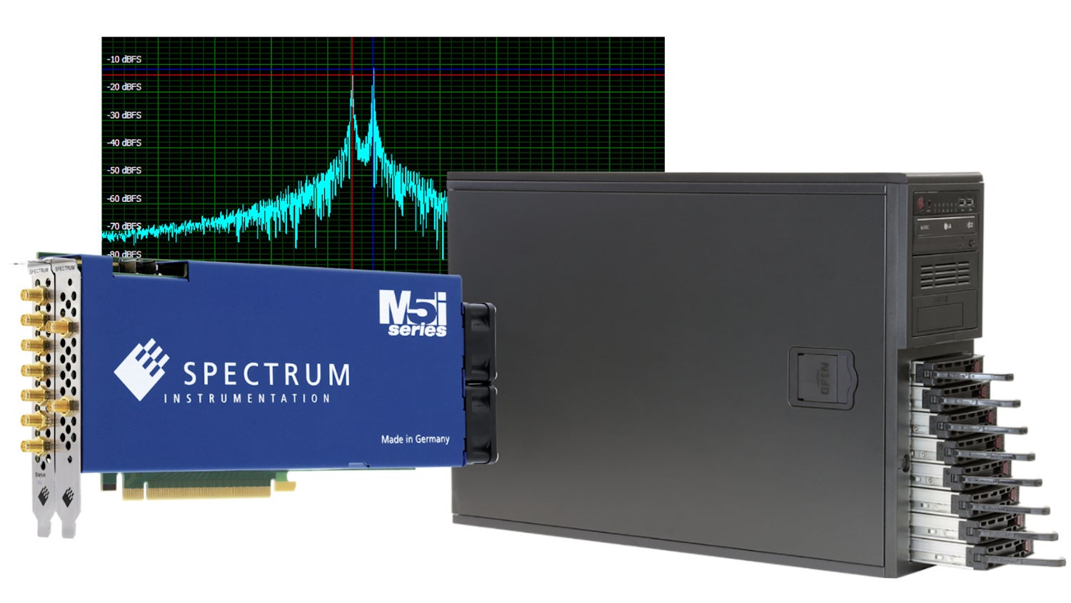 スペクトラム社のM5i.33xxデジタイザは、10GS/sでのデータの取得が可能。COTS部品で構築されたストリーミング用PCを介して、分析用のGPUあるいはストレージ用のSSDアレイにデータをノンストップでストリーミングします。
