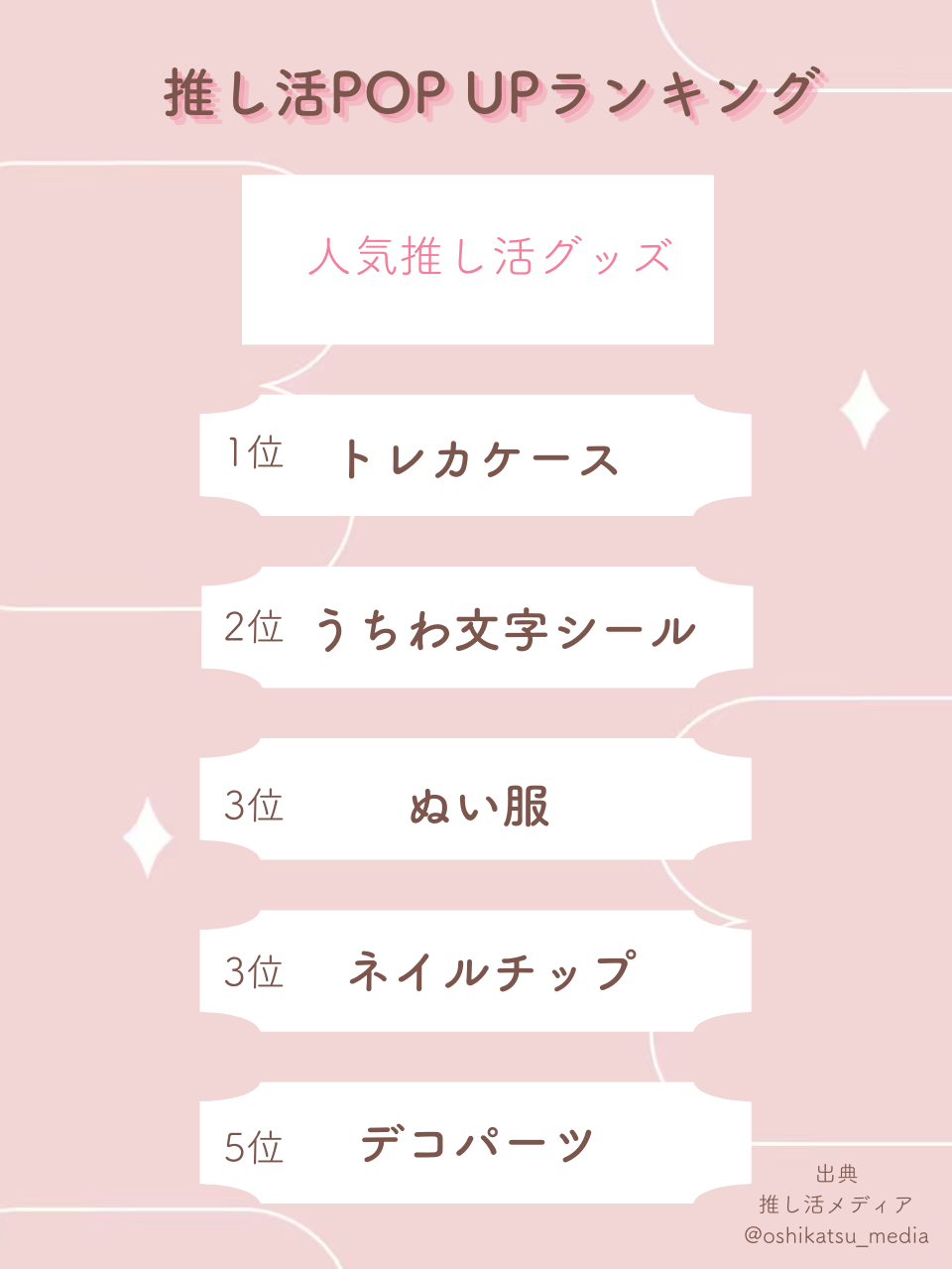 7.2万人フォロワー「推し活メディア」と推し活専門オンラインストアを運営する株式会社Oshicocoは、ポップアップイベント来場者を対象に人気推し活グッズランキングを調査しました。
