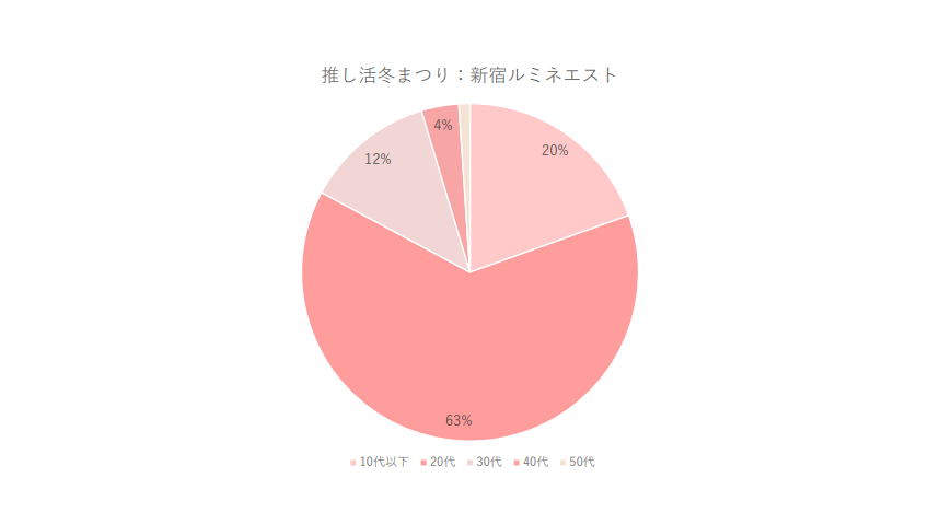 池袋パルコ・新宿ルミネエストで10代20代の割合に多少の差はありますが、来場者の年齢層はやはりZ世代が約8割を占めています。