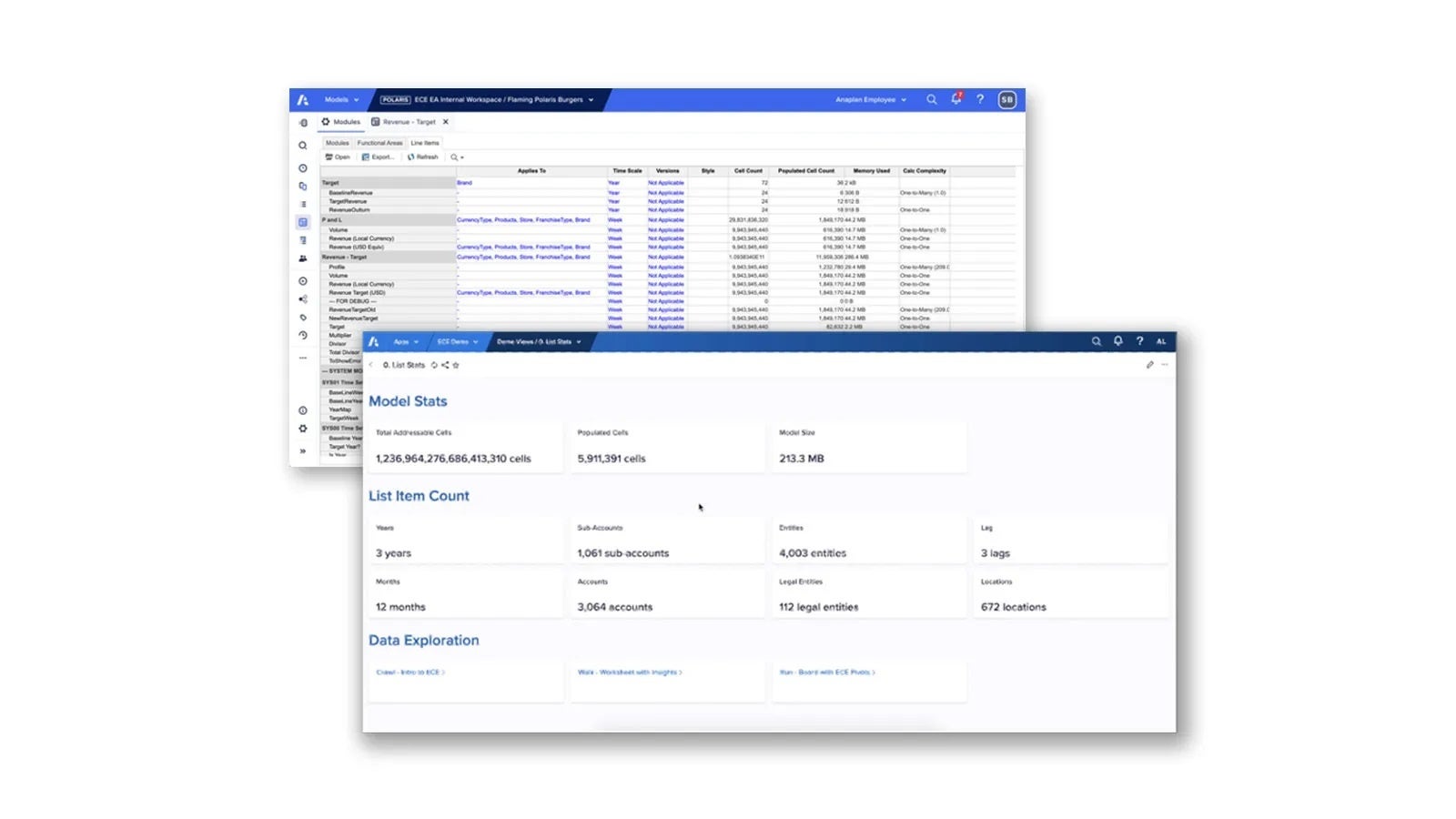 「Anaplan Polaris」を利用することで、大量で複雑なデータセットを活用して、ビジネスの全体像を俯瞰する大規模モデルを構築することができます。企業は、次元や階層などの既存のパラメーターと連携して、市場の速度でキーとなるトレンドを見つけ出し、ビジネス上の行動につながるインサイトを発見することができるようになります。