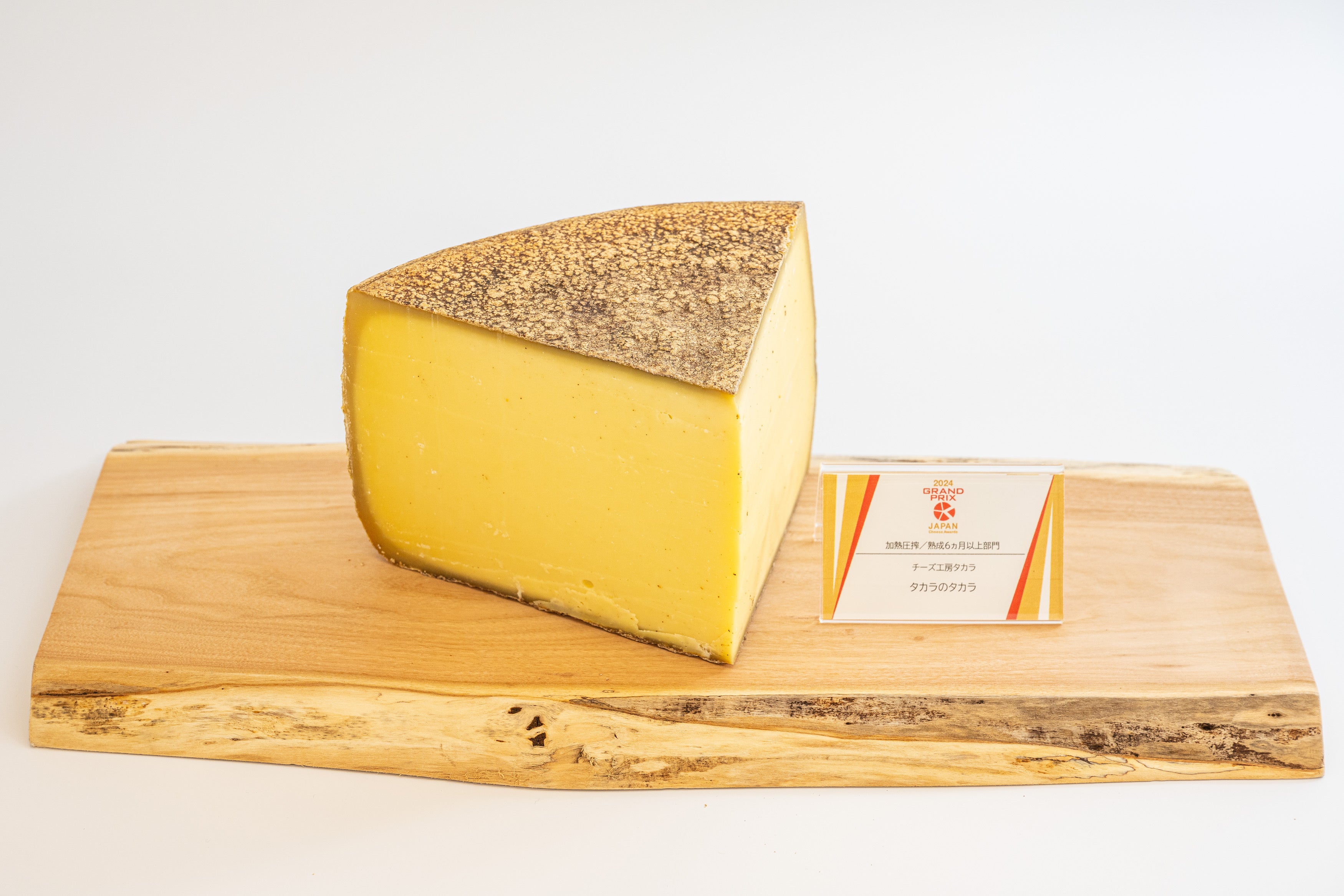 今年で6回目となる「Japan Cheese Awards 2024」では、全国120の工房から選りすぐりのチーズ371品が出品され、審査は「チーズプロフェッショナル」の資格を持ち、本アワード専門の研修を修了した審査員とゲスト審査員合わせて93名が担当。厳正な審査の結果、「加熱圧搾/熟成6か月以上」部門に出品された「チーズ工房タカラ」(北海道)の「タカラのタカラ」がグランプリを受賞しました。