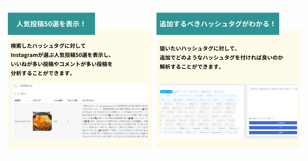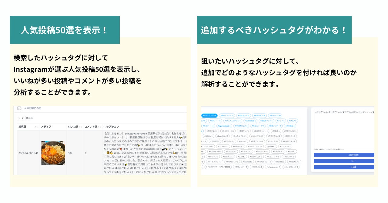 人気投稿50選では、活用したいハッシュタグを使った投稿の中で、アクション数が多い投稿をチェックできるので、ご自身のInstagram運用に取り入れることも可能です。