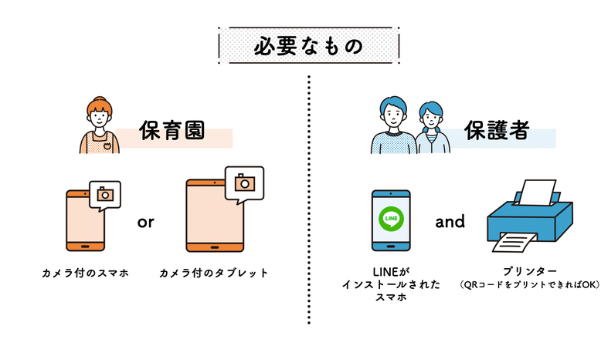 ・保育園や幼稚園、保護者、いずれにおいても新しいアプリのインストールおよびセットアップは不要です。
