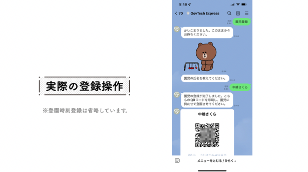 実際の登録は下図のようにLINEトーク画面を通じておこないます。ほんの1分もかかりません。
