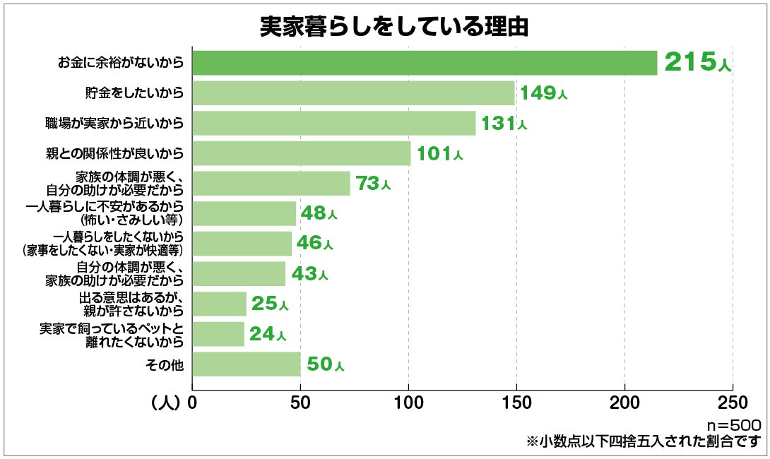 実家暮らしをしているのはなぜか、このような理由となっています。