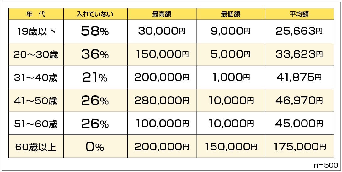 「お金を入れていない」と答えた人は全体の26%でした。気になる金額は、以下の通りです。