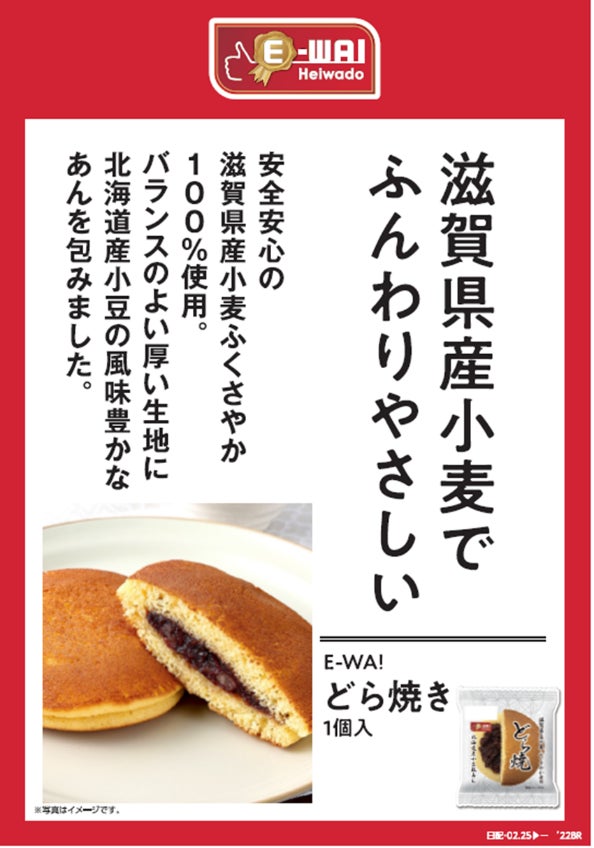 【平和堂】こだわりブランド「E-WA!」新商品! 『どら焼き』~滋賀県産小麦ふくさやか使用!~