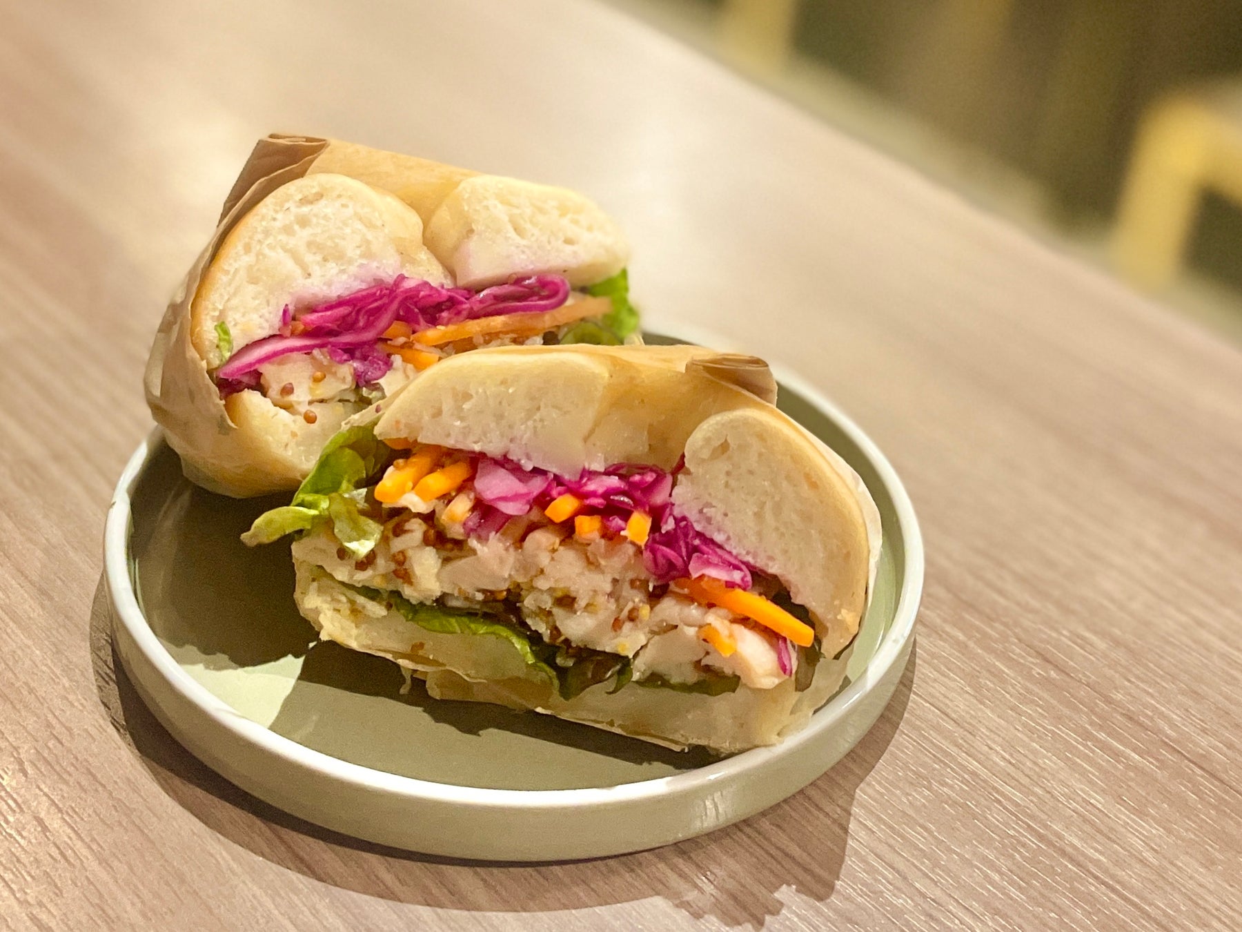 紫キャベツのマリネ・キャロットラペ・グリーンリーフをサンドしました。