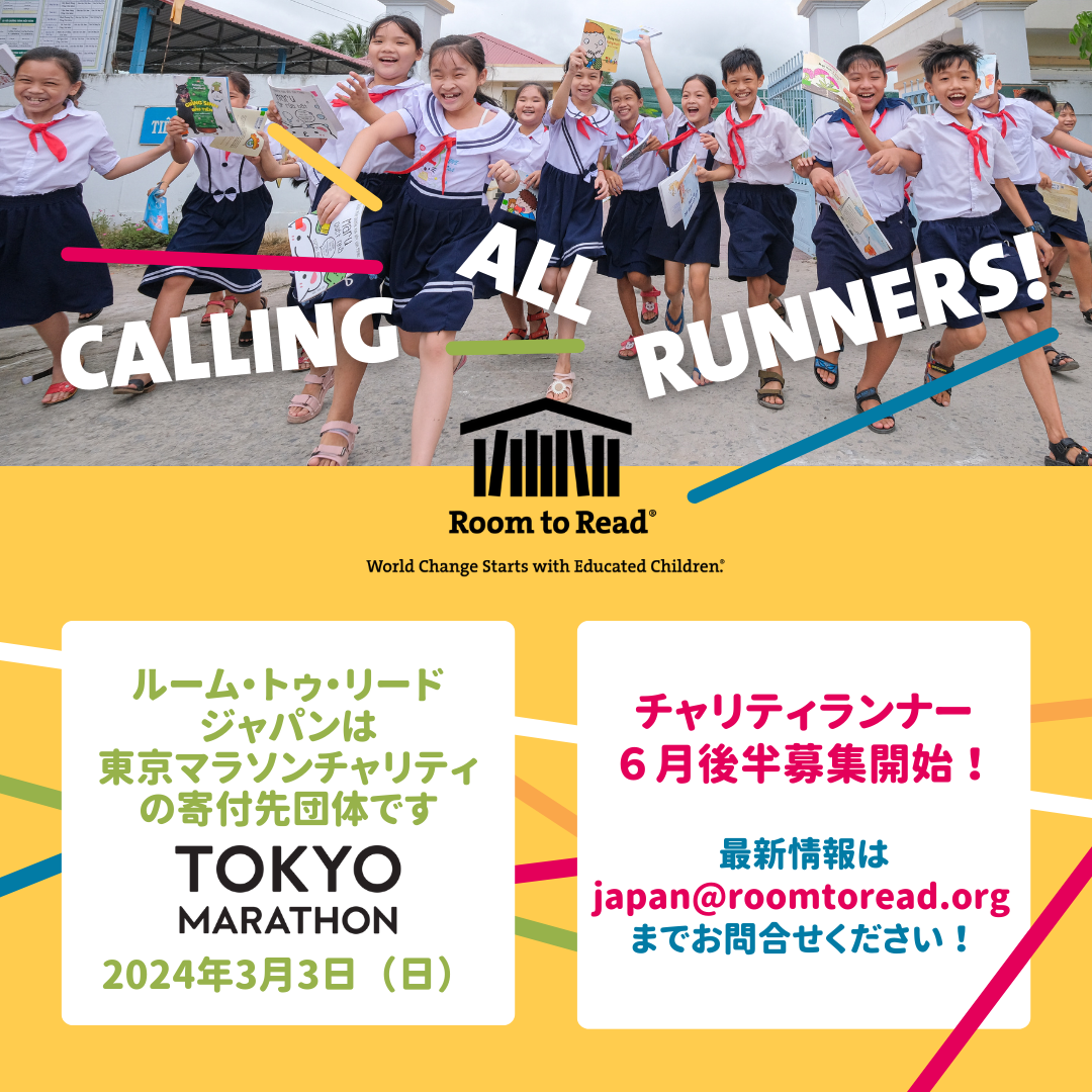 Room to Read Japan has become the donation recipient organization for the Tokyo Marathon 2024 Charity! Applications for donations and charity runners will be accepted from the end of June, and we invite you to join us to support Room to Read. As one of the Abbott World Marathon Majors, it is one of the most sought-after marathons, and we are excited to bring this opportunity to you.