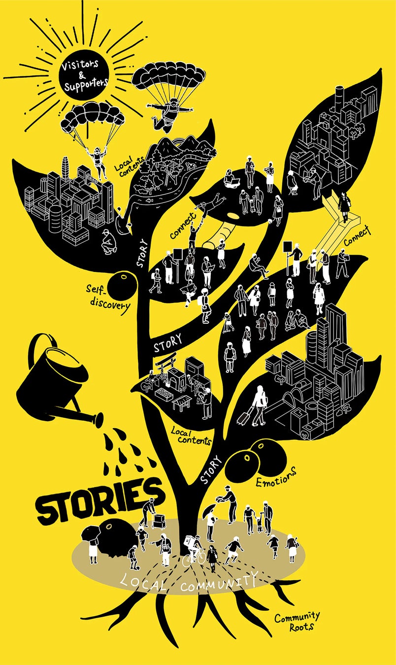 「STORIES」は「旅をするほど世界がよくなる」をコンセプトに掲げた、まちとの継続的な関わりが生まれる新しい旅のカタチです。創業当初より「ゲストハウス及び旅行業を通して社会課題を解決する」ことを掲げてきた宿場JAPANが、旅人と旅先の地域住民が繋がり合うことで、「旅をするほど世界がよくなる」を実現できる仕組みとして提案する、これまでにない体験型ツアーです。
