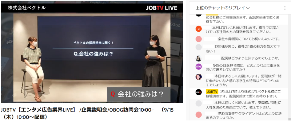 また、授業やアルバイトなどとの両立で当日参加できない場合も、JOBTVサイト内にて公開される配信アーカイブ動画にて、自分の都合に合わせて企業理解を深めることが可能です。