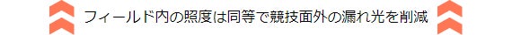 フィールド外への漏れ光の抑制とともに、施設利用者(プレイヤー)のグレアも抑制しています。