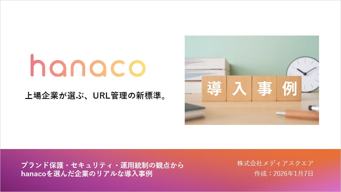 株式会社メディアスクエア(本社:東京都千代田区、代表取締役:大川 拓也)は、上場企業および上場準備企業を主な対象とした法人向けURL管理サービス 「hanaco Corporate Suite(API+Console)」 を、2026年2月1日より正式に提供開始いたします。