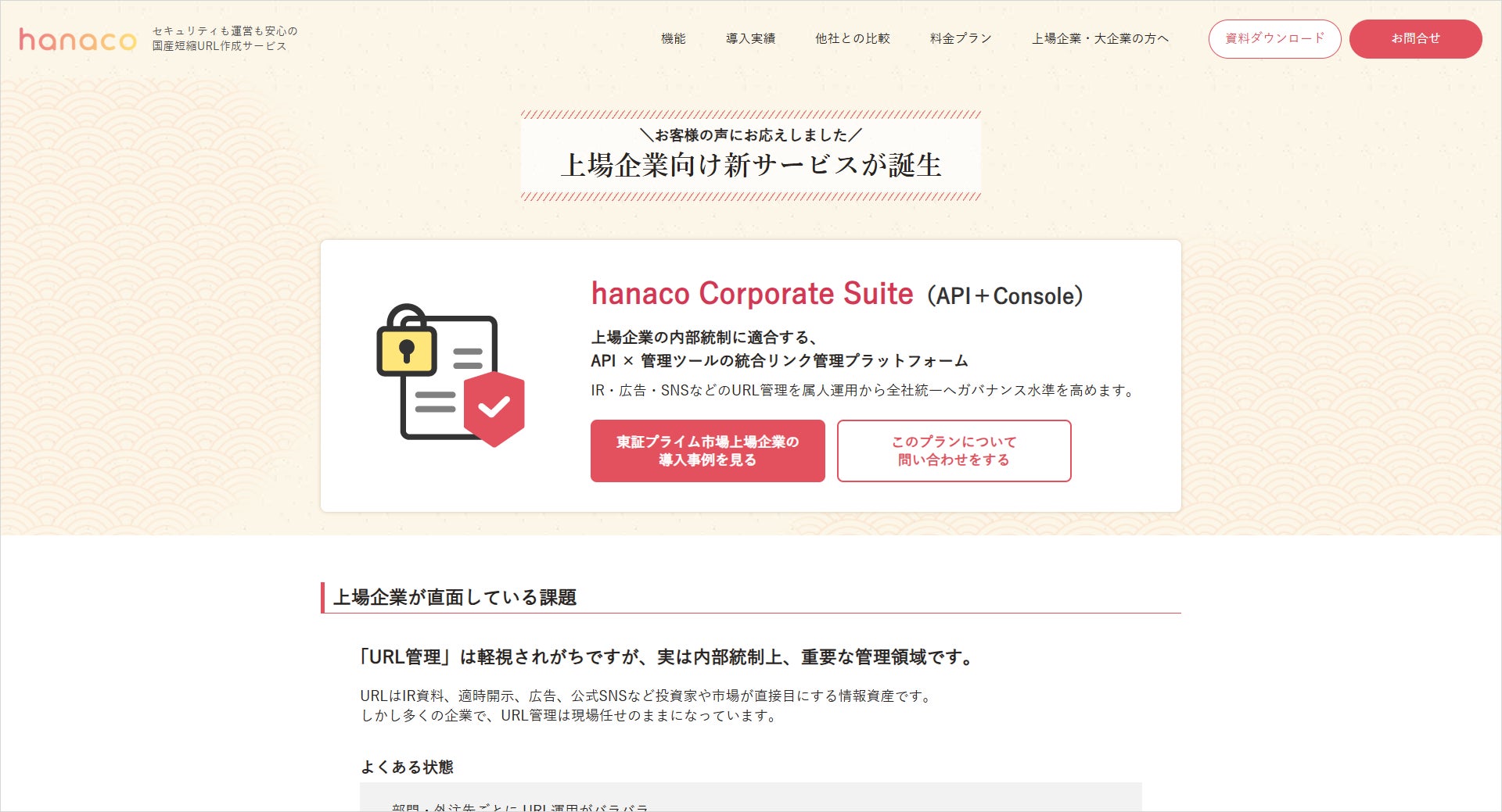 上場企業のURL運用を“内部統制対応”へ、短縮URL・QR・APIを統合した「hanaco Corporate Suite」を2月1日より提供開始