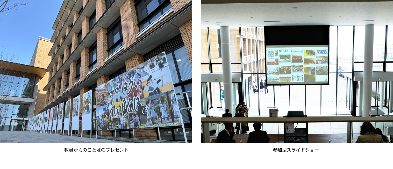 当日実施される特別企画では、教職員・先輩学生・地域の方から新入生に向けた数々の“歓迎のことば”がキャンパス内にあふれ、学内一体となって新たな門出を祝います。