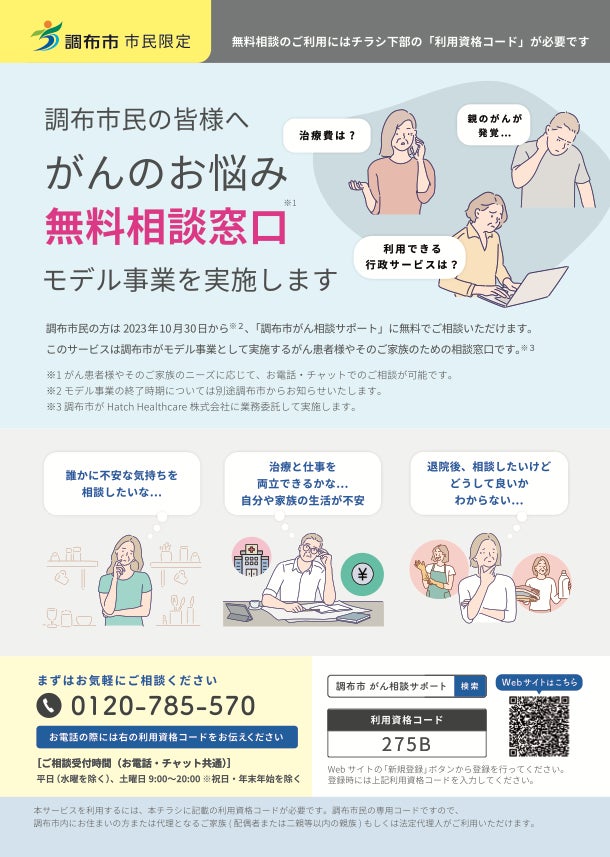 調布市が、がん相談の経験とノウハウを有するHatch Healthcare株式会社に委託して実施します。