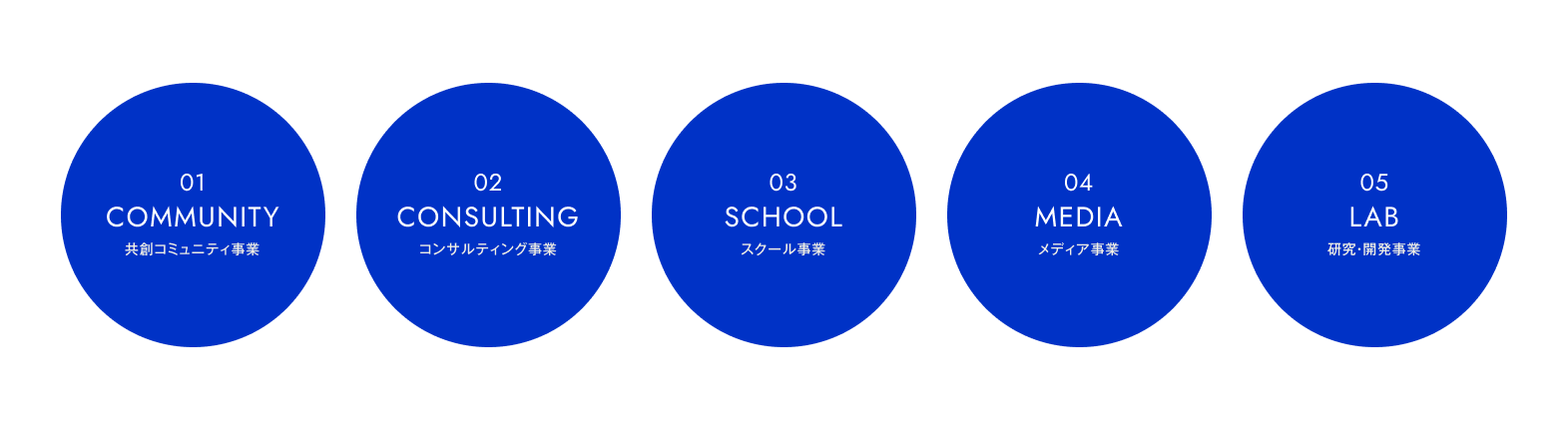 ・事業内容:共創コミュニティ事業、コンサルティング事業、スクール事業、メディア事業 、研究・開発事業