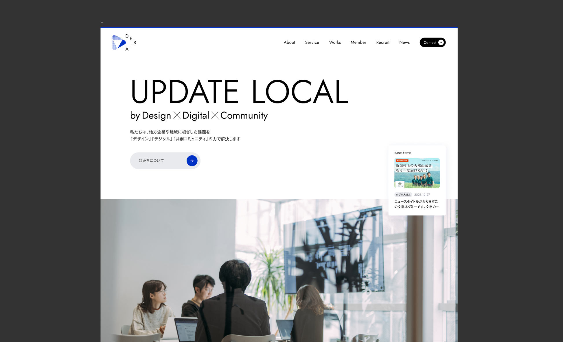 新コーポレートロゴは、私たちのミッションである「UPDATE LOCAL」へと前進する方向性を表現した新たな存在です。3つのモチーフそれぞれがデザイン・デジタル・コミュニティを示しており、以前よりさらに「UPDATE LOCAL」を体現するようなロゴマークにしています。この新しいシンボルを通じて、地域社会のアップデート、そして社会に新たな価値を提供することを目指して参ります。