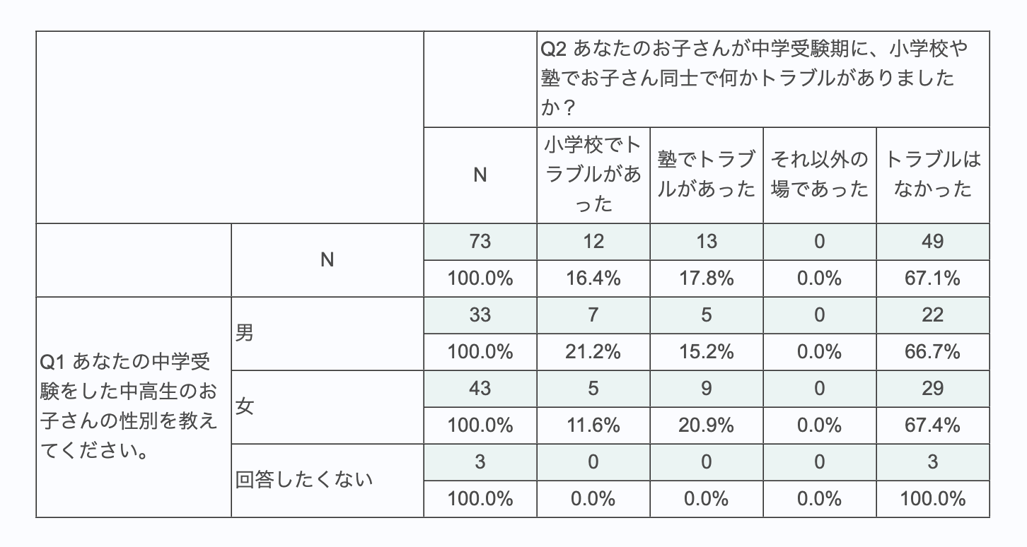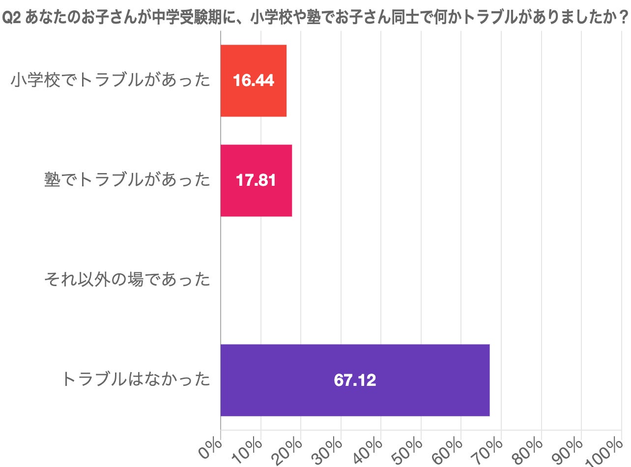 Q2. あなたのお子さんが中学受験期に、小学校や塾でお子さん同士で何かトラブルがありましたか。