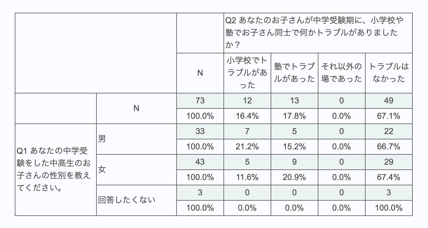 このたび「中学受験における子供同士、ママ友同士のトラブル」についてのアンケート調査の結果を公開しましたことをお知らせいたします。(調査会社:Freeasy 調査時期 2023年10月13日〜10月17日)