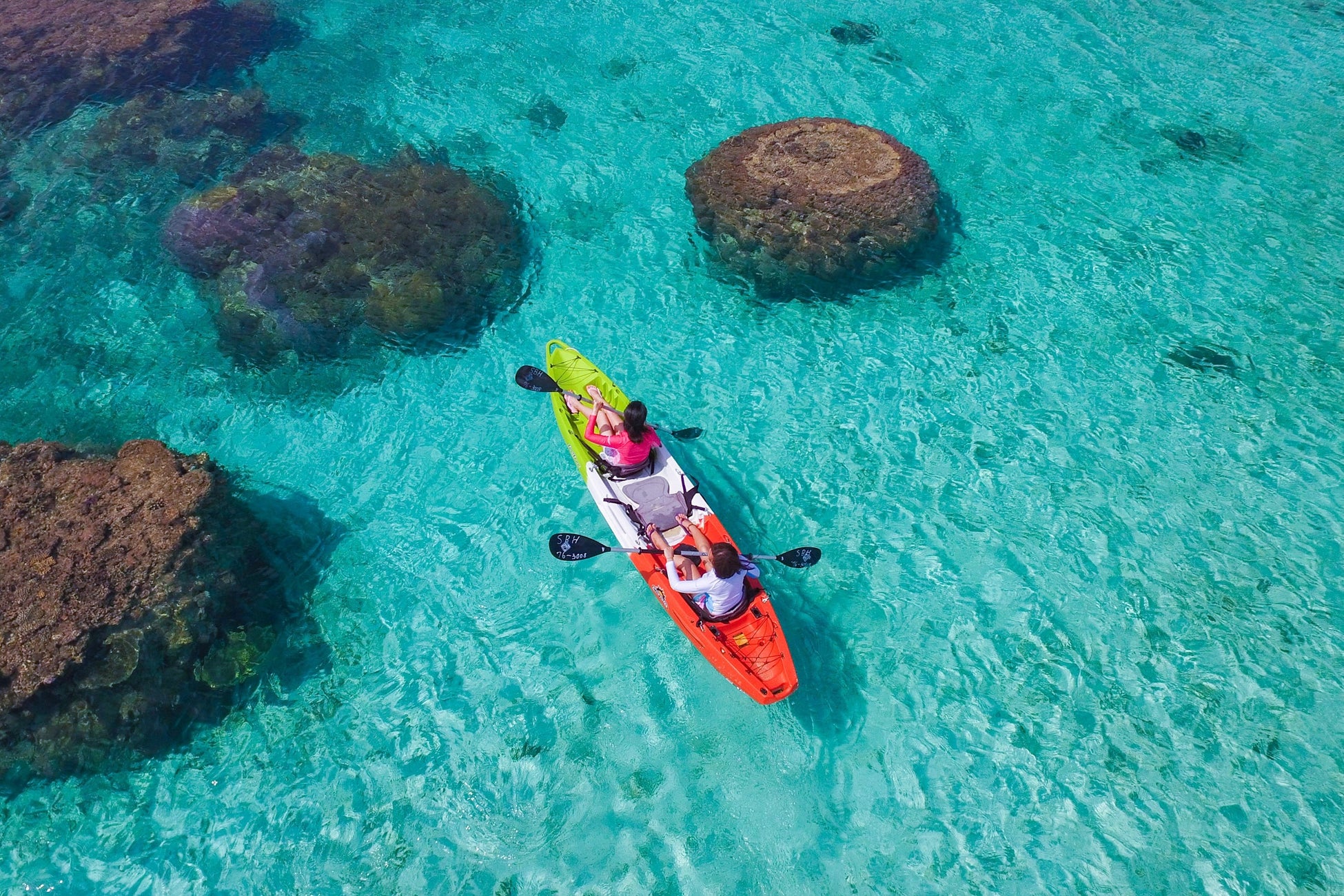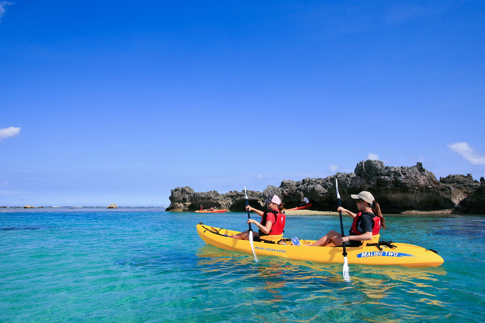 透明な海の上をパドリングでスイスイと進むカヤック。宮古島の雄大な自然の楽しみをご体験いただけます。(※3歳以上、各回ともに先着順・定員になり次第締め切り)