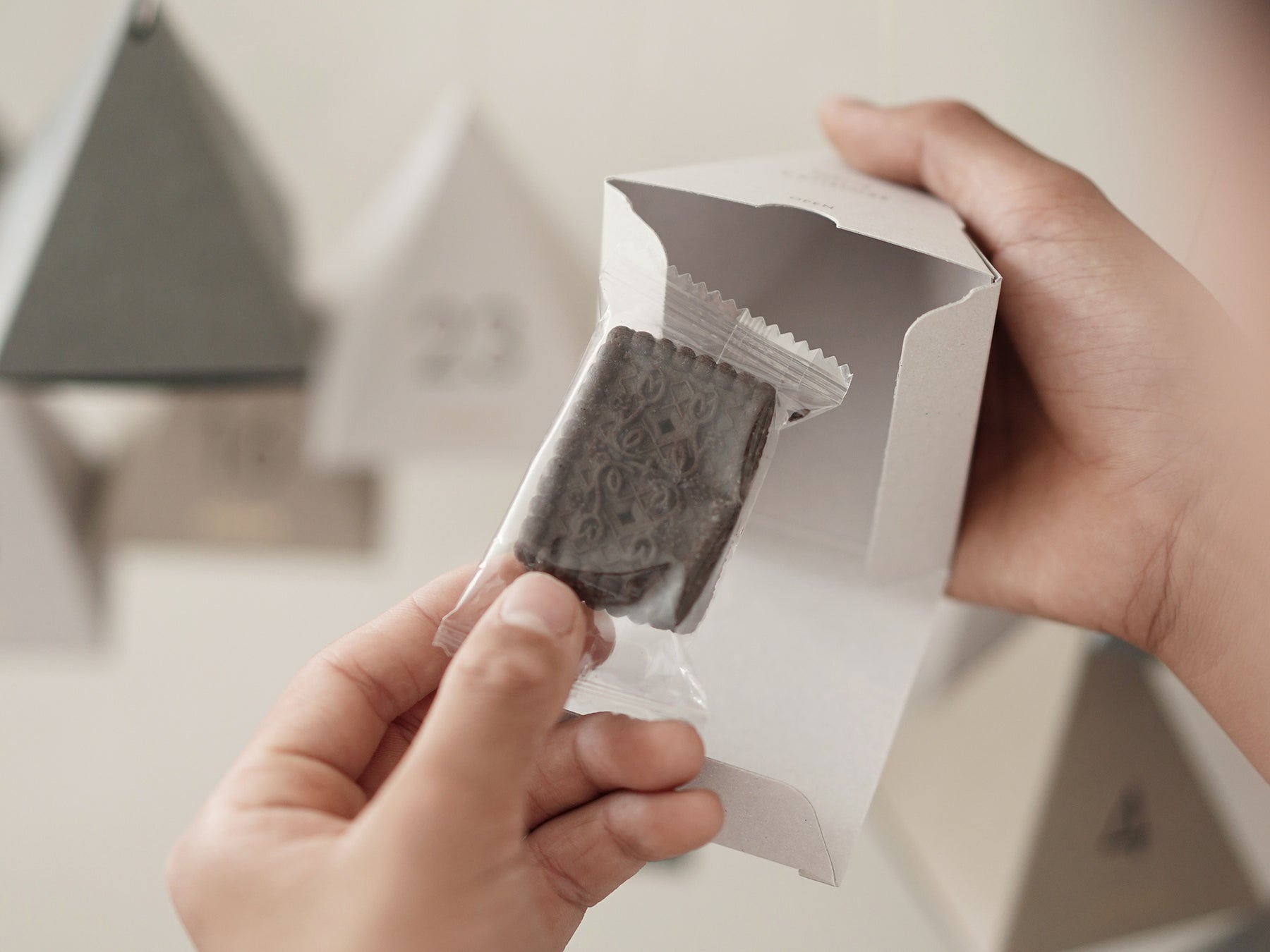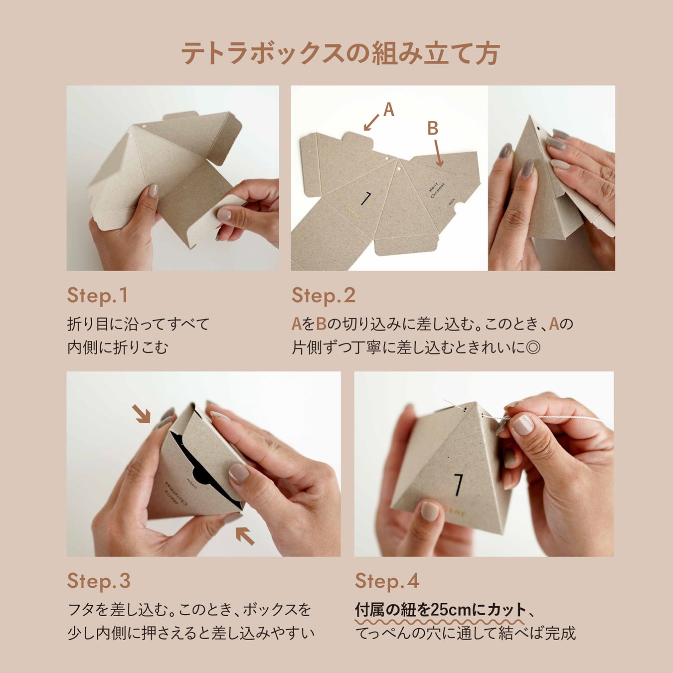 ・テトラボックスを組み立てて中身を入れて飾る「アドベントカレンダー テトラボックスキット」