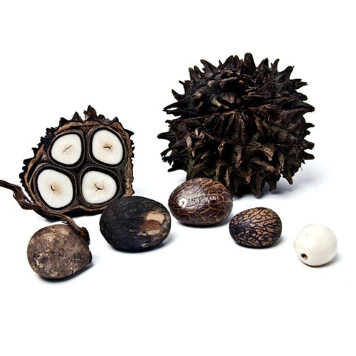 象牙に代わるエコ素材として注目を浴びているタグア。南米の太平洋岸の熱帯雨林に自生する象牙椰子の種子から作られています。