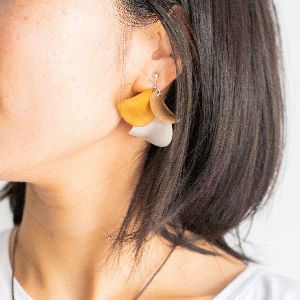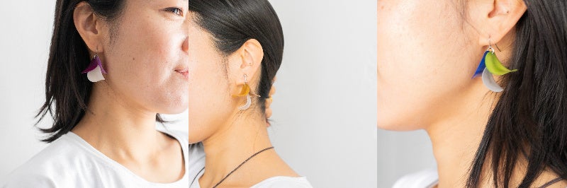 大ぶりですが、アクリルや樹脂に比べ驚くほど軽く、付けているのを忘れてしまいそうな軽やかな付け心地です。