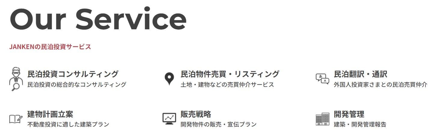 JANKENは、民泊投資に関するありとあらゆるサービスを提供します。