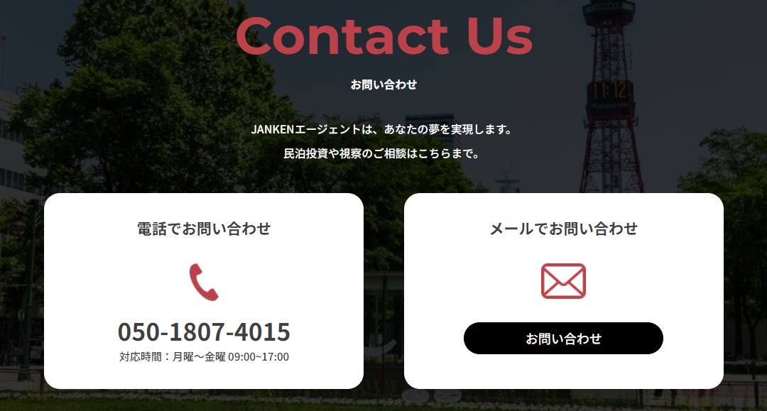 北海道での民泊投資をご検討の際は、ぜひJANKENにご連絡ください。